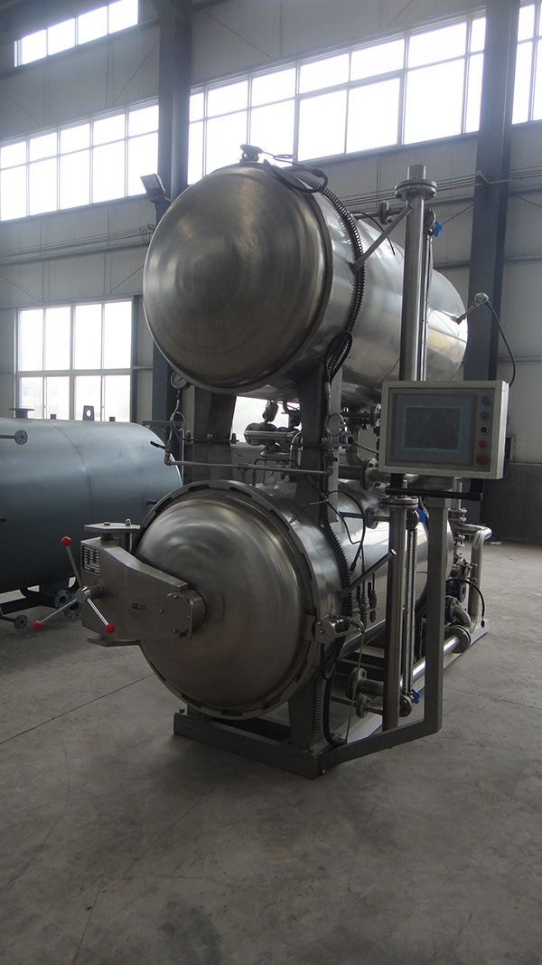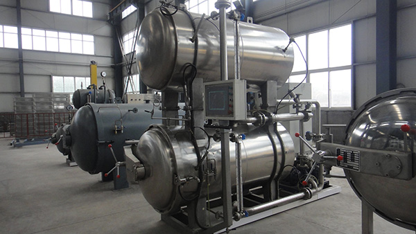 卧式杀菌锅可根据不同产品设计水浴式杀菌、蒸气杀菌、喷淋式杀菌三种方式。温度、压力、杀菌时间可分自动控制和手动控制。