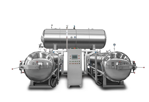 锅内进入少量循环水,并采用进口高效率换热器,包装物在10-15分钟内可以从20度迅速升温至121度。