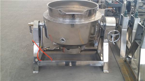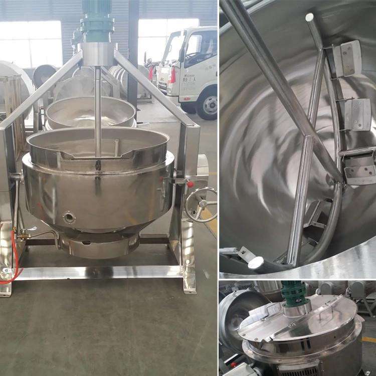可倾式燃气夹层锅是采用燃气(液化气、天然气、人工煤气等)为能源,其锅身可以倾覆,以倒出锅内物料。搅拌电机为无级变速电机,可以在一定转速范围内任意调节,达到食品加工工艺要求。搅拌叶片拆洗容易,搅拌装置可升降,中心搅拌频率高且不破坏食材原状,又不会将菜炒焦。本设备主要材料为奥氏体不锈钢,符合卫生要求,外型造型美观大方,使用方便。独特的燃烧器燃烧充分、热效率高。广泛用于餐饮、食品加工、调味品、休闲食品、医药行业等领域。燃气炒锅适用于蒸煮食物,熬制糖稀,炒制蔬菜、调味品、药材和焙烤等,常用于餐饮和食品加工或化工制药等过程中加热搅拌炒制使用。