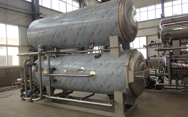 由于压缩空气是不良导热体,况蒸汽本身又具有一定的压力。因此,在杀菌时升温过程中,不放进压缩空气,而只在达到杀菌温度后处于保温时,才开放压缩空气入锅内,使锅内增加0.5~0.8个大气压。特经过杀菌后,降温冷却时,停止供应蒸汽,将冷却水压入喷水管。由于锅内温度下降,蒸汽冷凝,而使锅内力降低采用压缩空气的压力来补偿。